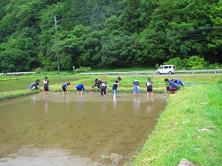 お天気が不安なので、早く植え終わるよう田んぼの手前と奥で二手に分かれてスタートです。